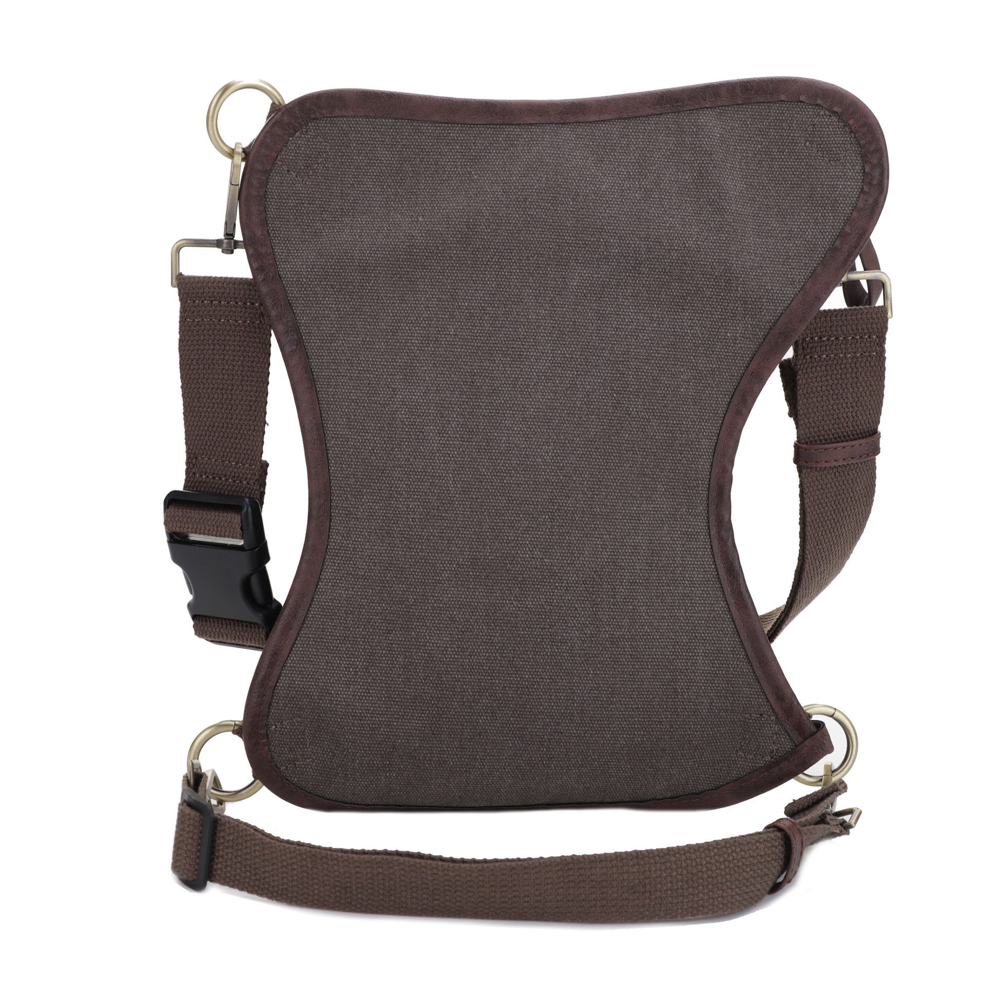 I bought this as a motorcycle bag. All my other leg bags ripped or the zippers came apart or failed in some way. This canvas leg bag seems very well made with quality rings and hardware. I hope it holds up to abuse over time. I will say the straps are excessively long when used as a leg bag, I had to get creative with fixing them as short as possible, which leaves long dangling slack ends not ideal on a bike. But I made it work.