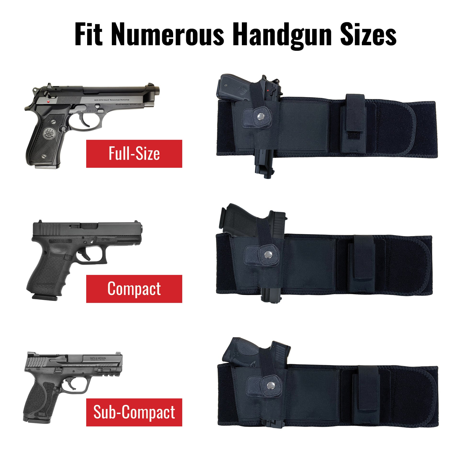 - One size fits all holster is compatible with the full range of full-size to sub-compact guns and revolvers