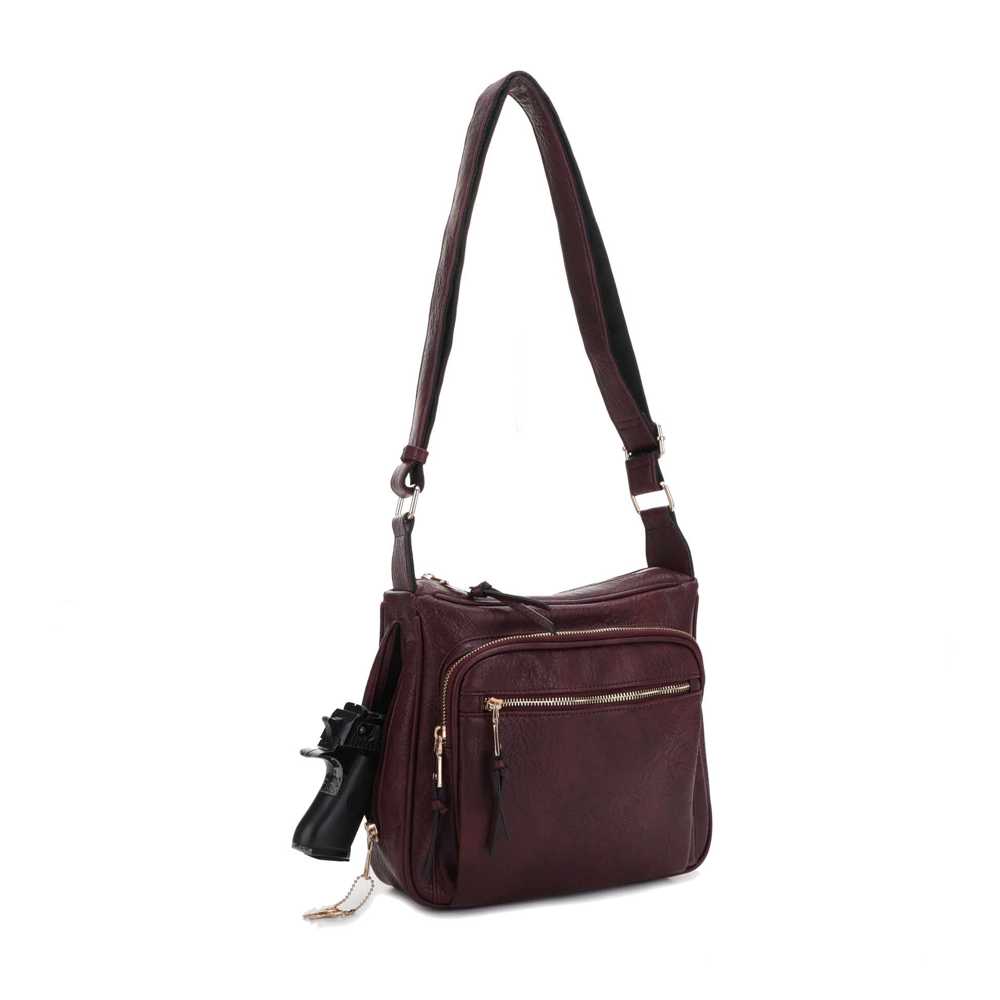 I love this bag. It’s everything the description stated. Upon wearing the bag for the first time I discovered a hole in the lining of concealed carry area. I would recommend but check the bag out before carrying it.