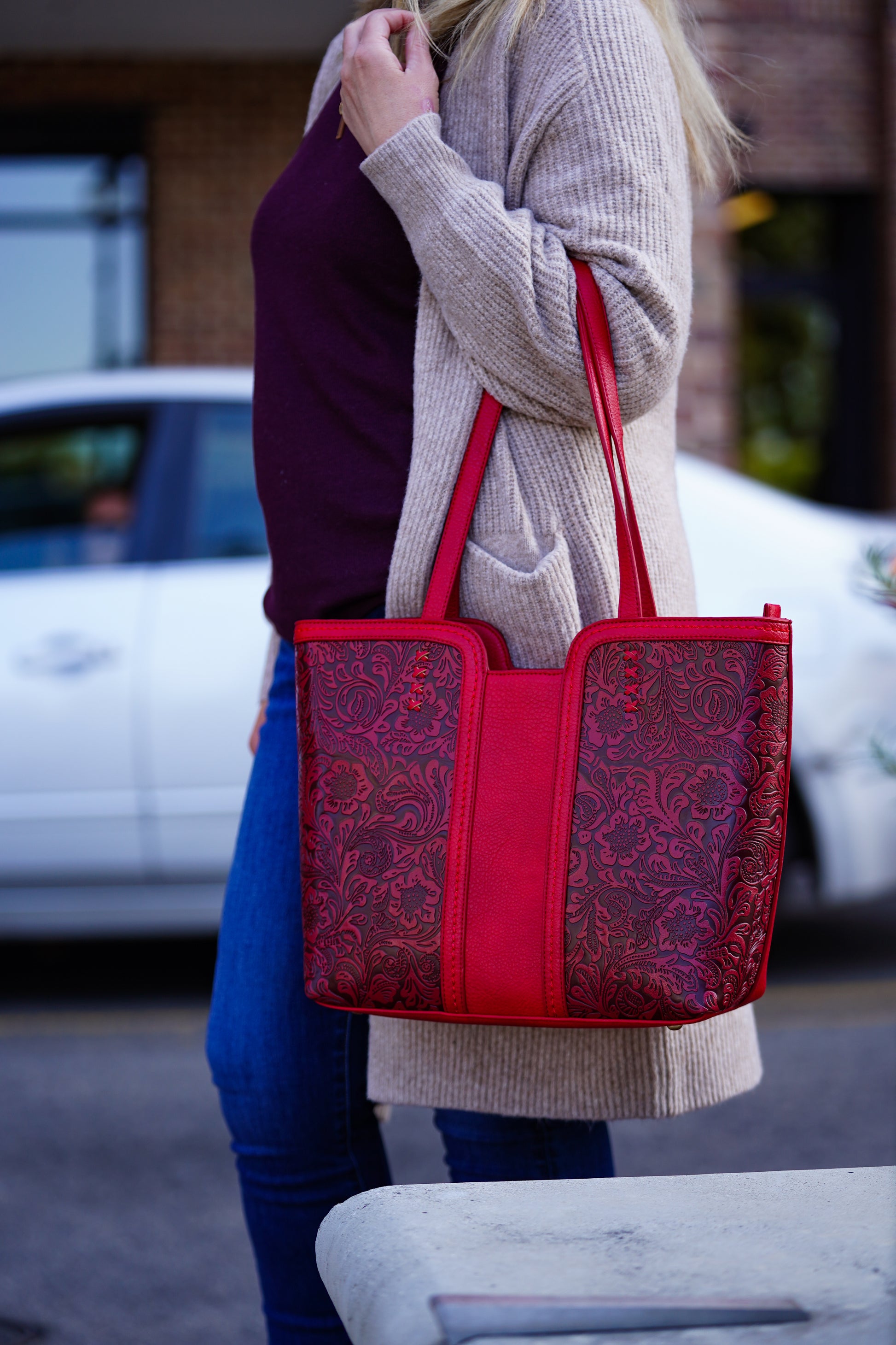 Cassidy Concealed Carry Tooled Tote Bag with Matching Wallet