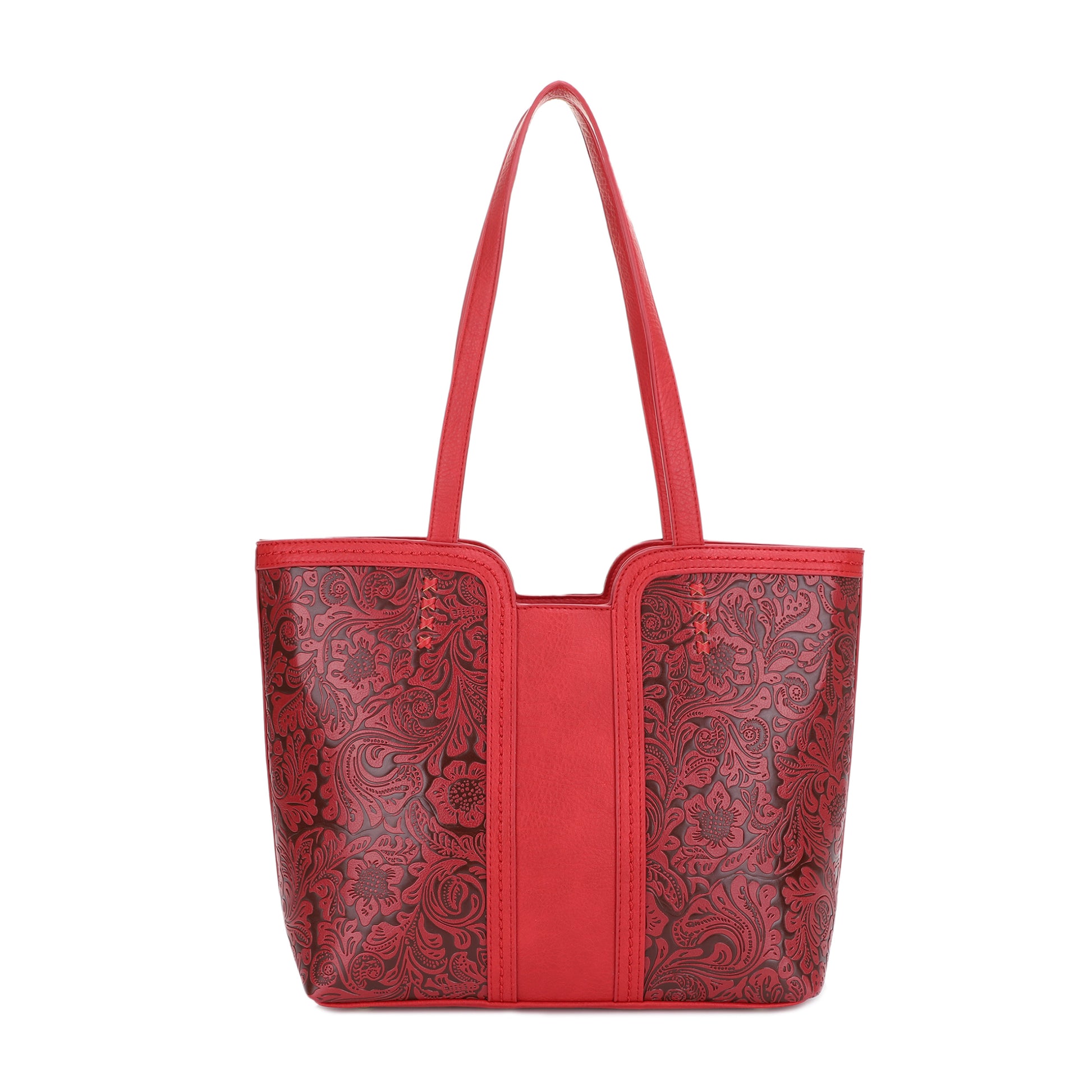 Upgrade your accessory collection with this sophisticated tote bag and matching wallet set. Crafted from premium faux leather with an intricate embossed floral pattern, it combines classic style with practical features to keep you effortlessly organized. With a spacious interior, dedicated pockets, and added security, this tote will keep all your essentials stylishly in place.