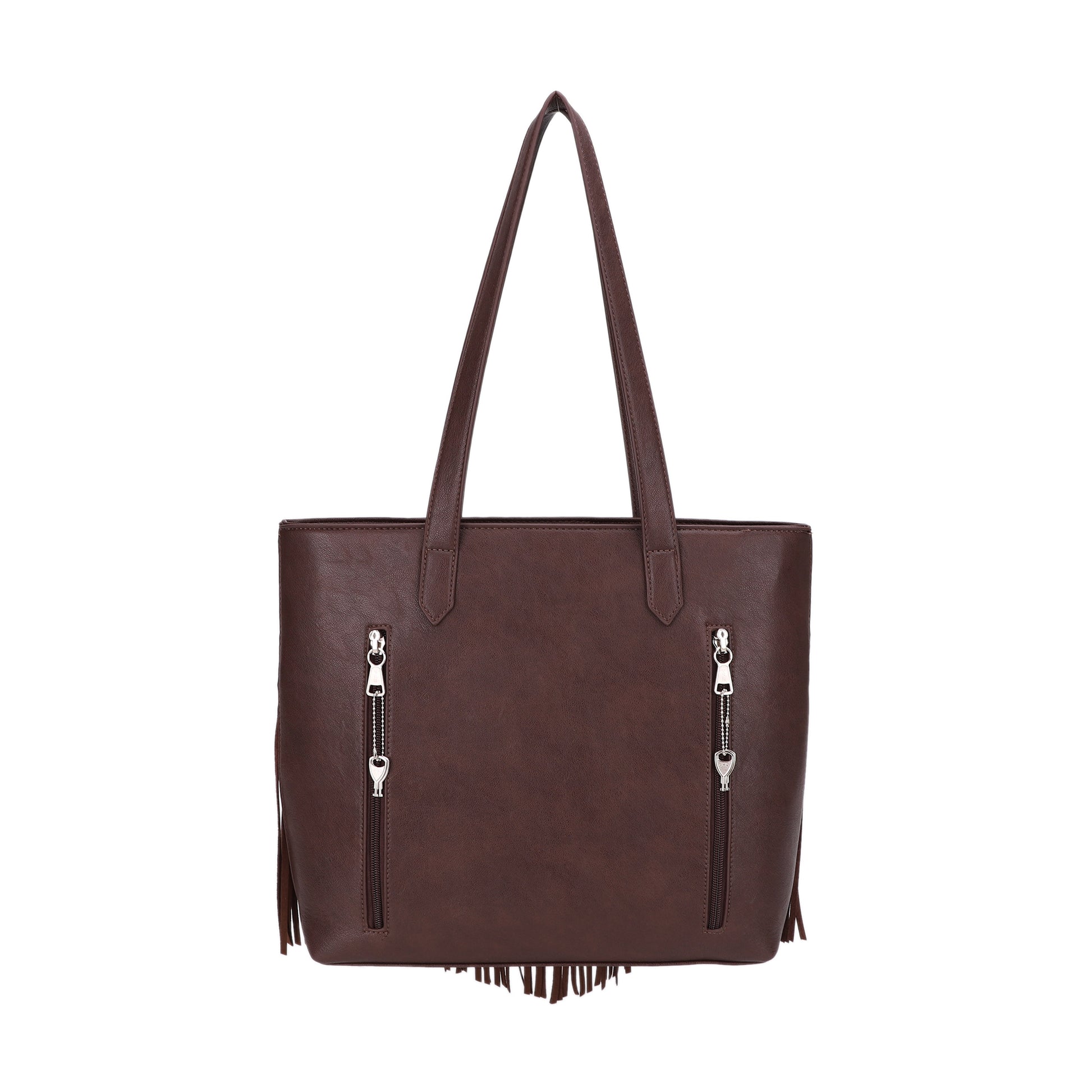 The Sedona blends Western-inspired charm with everyday practicality. Crafted in rich, vintage-look vegan leather, it features braided detailing and cascading fringe for a bold, statement-making finish. Designed for daily carry, Sedona offers a roomy zip-top interior with multiple pockets to keep your essentials organized. Comfortable shoulder straps make it easy to carry from day to night. Thoughtfully designed with a discreet dual-entry concealment compartment and removable holster, Sedona delivers style with added versatility.